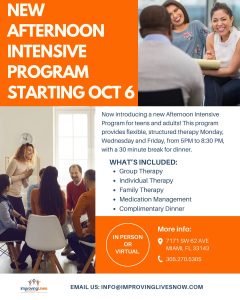 Our team connects individuals with the right therapy solutions to support emotional well-being with services tailored to their individual needs and financial situation, providing Partial Hospitalization Programs (PHP), Intensive Outpatient Programs (IOP) and Outpatient Programs (OP) for elders, teens and adults. Nearly all insurances are accepted including Medicaid and Medicare. To ensure accessibility, we also offer transportation and meals during treatment. Every service is available in person or via telehealth. We offer in English and Spanish.