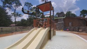 The main pool at Disney’s Fort Wilderness Resort and Campground is always poppin’! You can enjoy the 67-foot slide or if you have little ones, they have a mini water park with a little slide and lots of water squirting everywhere. If you’re around the pool at 3 o’clock, you’ll be able to take advantage of some poolside games. Every day there is something new.