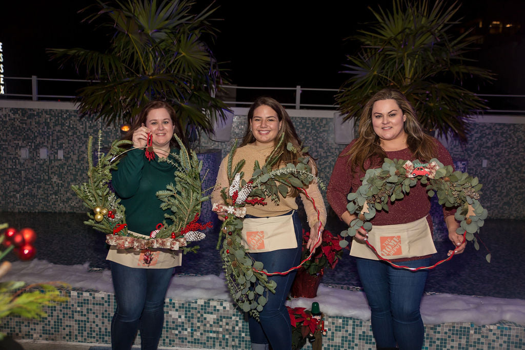 Christmas! We were overjoyed to spread Christmas cheer and provide a place for Moms to celebrate the season. Thanks to The Home Depot and The Home Depot Foundation, we were able to literally “deck the walls” of the hotel rooftop. The entire space smelled like a Christmas tree farm because of the abundance of fresh boughs including Fraser fur, pine, and cedar.