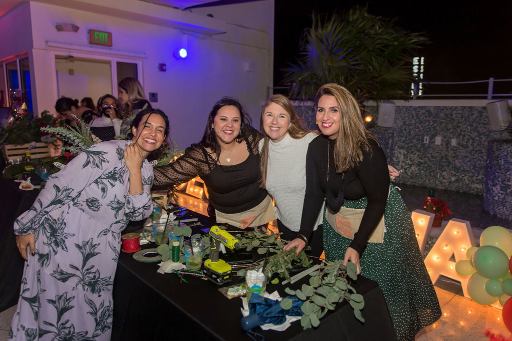 Guests of the event gathered at the beautiful SPF 4 Rooftop at The Clevelander in South Beach, overlooking the Atlantic Ocean for a night of DIY fun. The rain couldn’t stop us from enjoying a much needed Moms Night Out! Each guest was greeted with a signature cocktail and canapés including polenta short ribs, parmesan crusted Brussel sprouts, and cranberry and cheese tartine.