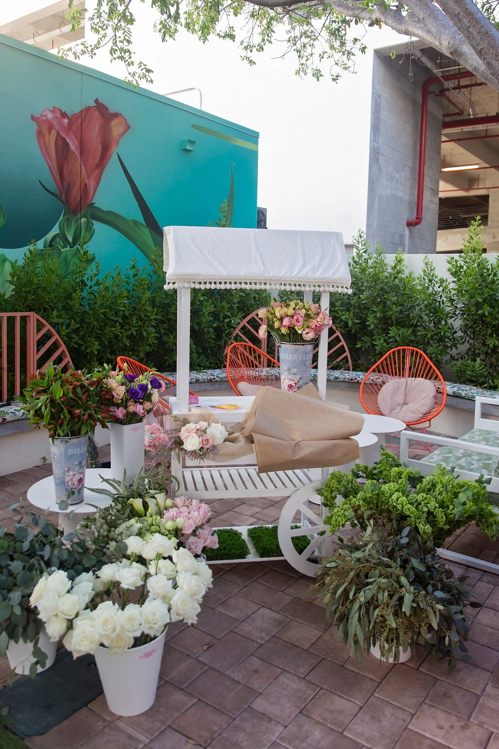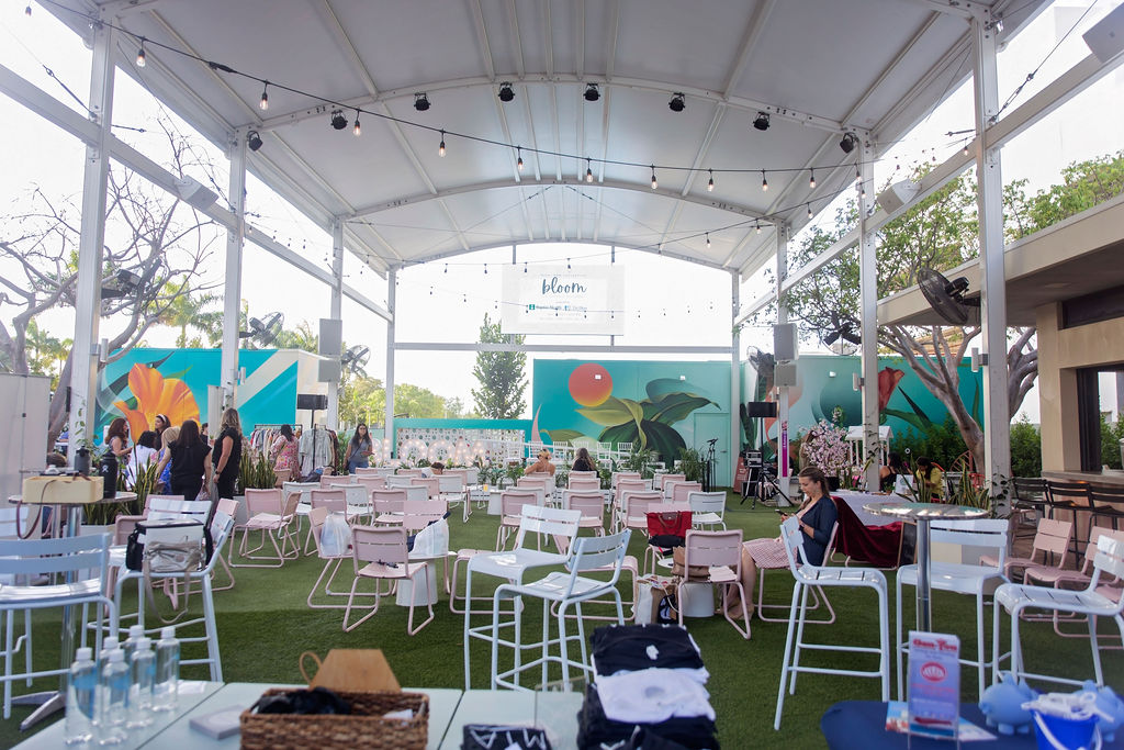 The Doral Yard was the perfect outdoor setting for Bloom 2022! It is a 20,000 square foot “community gathering space designed to foster local entrepreneurship and culture.” With tropical murals surrounding the space, fresh greenery everywhere and planes flying overhead, The Backyard at The Doral Yard felt quintessential Miami!
