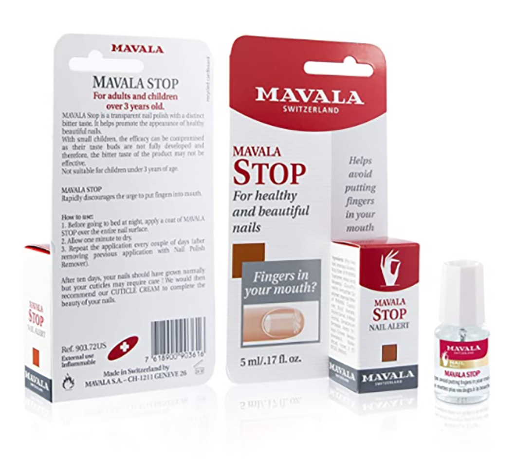The first one we tried was Mavala. It’s put on the nails like nail polish. It’s extremely bitter. I tasted it to see what my daughter would feel. So nasty. I started using this when she was 2 years old.