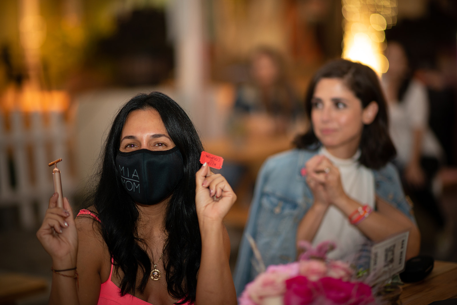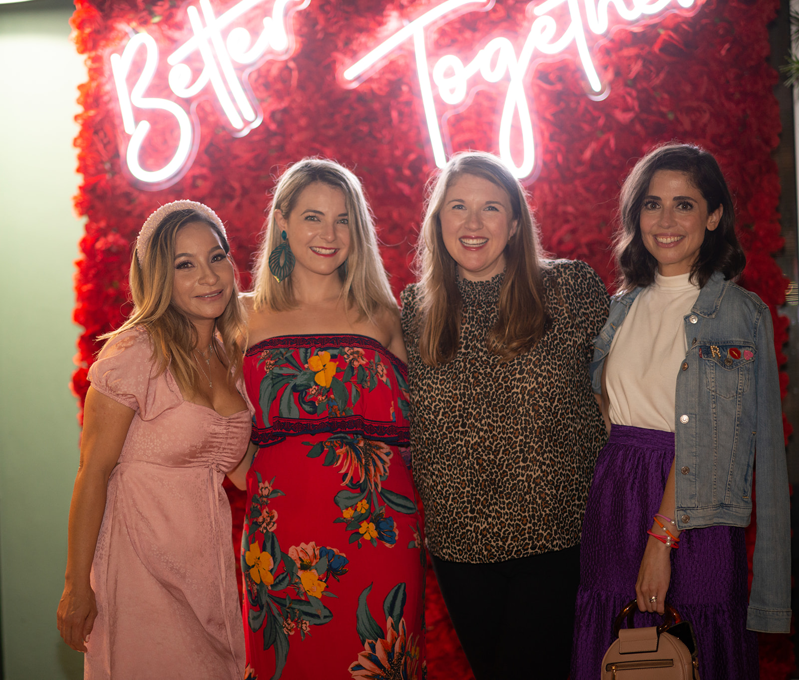 Moms were able to snap photos of their night out by the stunning red rose flower wall provided by The Flower Wall Co. Miami. The neon words above the flower wall, “Better Together” became the theme of the evening.