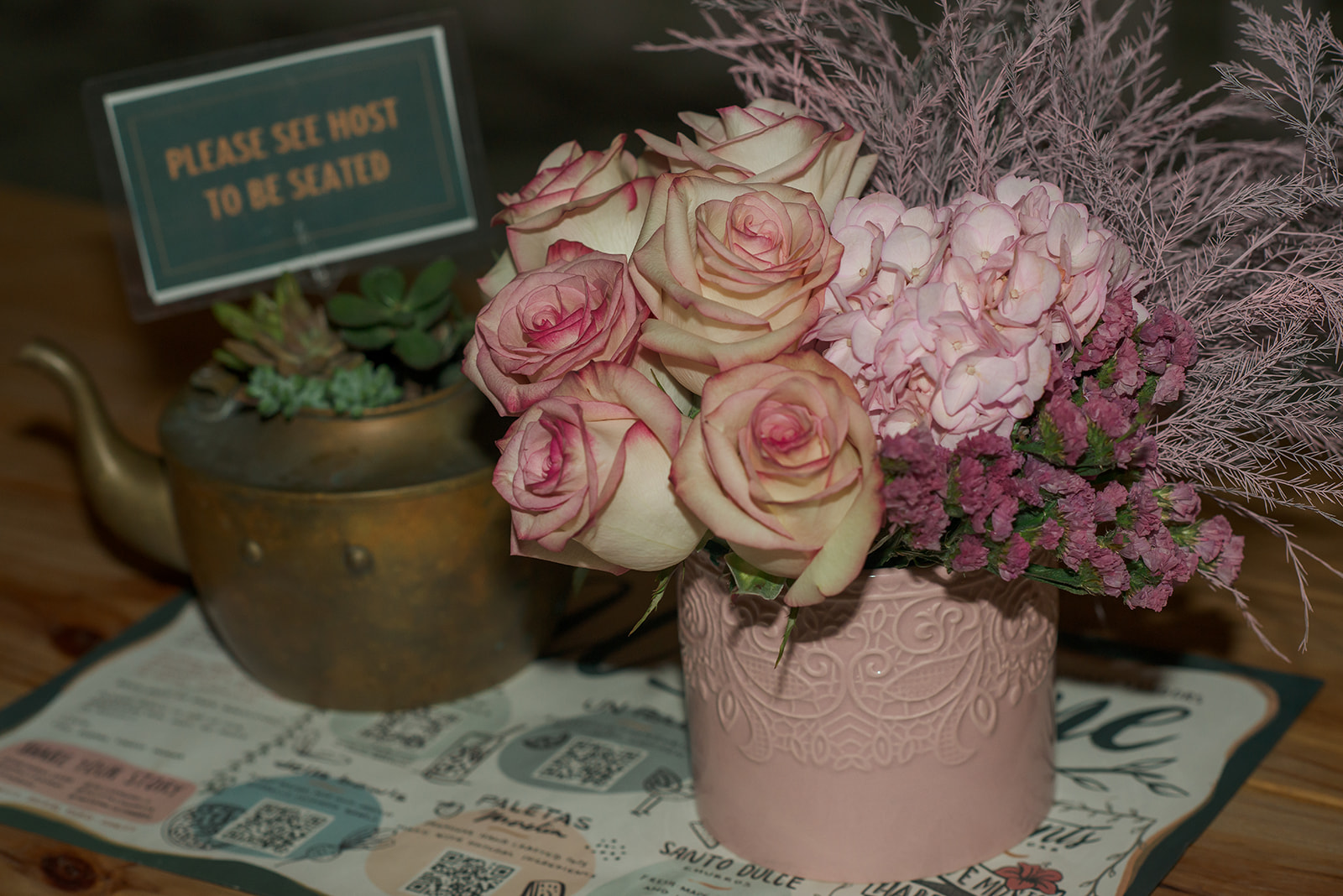 The tables were beautifully decorated with floral arrangements provided by One Rose.